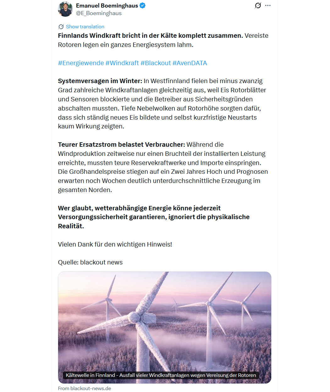 Ja, aber sicher doch, AI Datencenter betrieben "grünen" Windmühlen und engineered von Afghanen. Es wird immer peinlicher, Europäer zu sein.