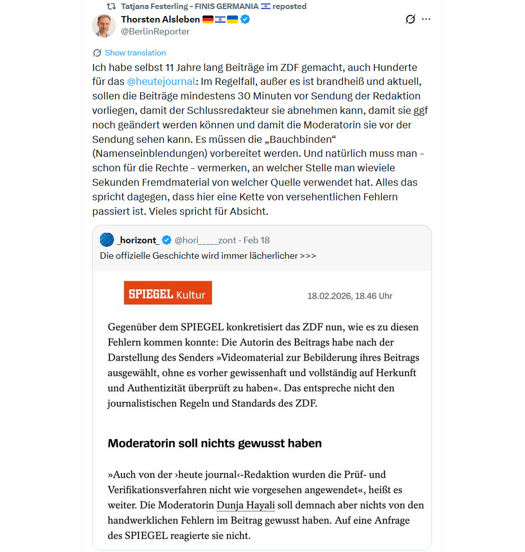 Bildquelle: Screenshot - "Thorsten Alsleben 🇩🇪🇮🇱🇺🇦 - @BerlinReporter"