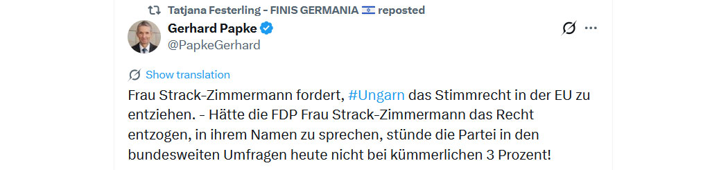 Bildquelle: Screenshot - "Ceterum censeo Unionem Europaeam esse delendam - @PeterPilz3"