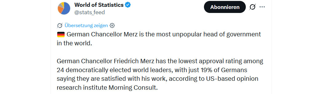 Ob es der Fritz auch ins Guinness Buch der Rekorde schafft? Als unbeliebtester Regierungschef der Welt?