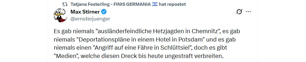 Wow, da kann man ja glatt mal gratulieren! Die Hamburger Richterin Anne Meier-Göring und ihr Prozess aus 2023, in dem sie acht Migranten (Afghanen, Iraker, Syrer, Marokkaner, Türken und Bulgaren aka Gipsies) wegen "Migrationsfrustration" frei ließ, nachdem die ein 15-jähriges Mädchen drei Stunden lang vergewaltigten, hat es zu einem Retweet von @GadSaad und dann zu einem weiteren Retweet von @elonmusk mit dem Kommentar "suizidale Empathie" geschafft. Damit genießt sie nun weltweite Aufmerksamkeit und alle können sehen, dass die deutschen woke Verseuchten immer noch global führend sind auf dem Gebiet der totalen Durchgeknalltheit.