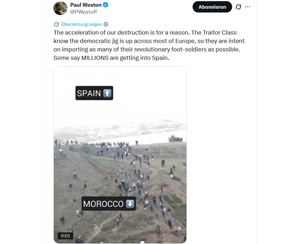 Dies ist die Leiche Europas auf der Weltbühne, die von einer einzigen hirnverrotteten Generation linker Abschaum, aufgeweckter Freaks, Klima-Eiferer, Netto-Null-Verzögerungen, Transen-Wahnvorstellungen und grenzenlosem Verrat abgeschlachtet wird.