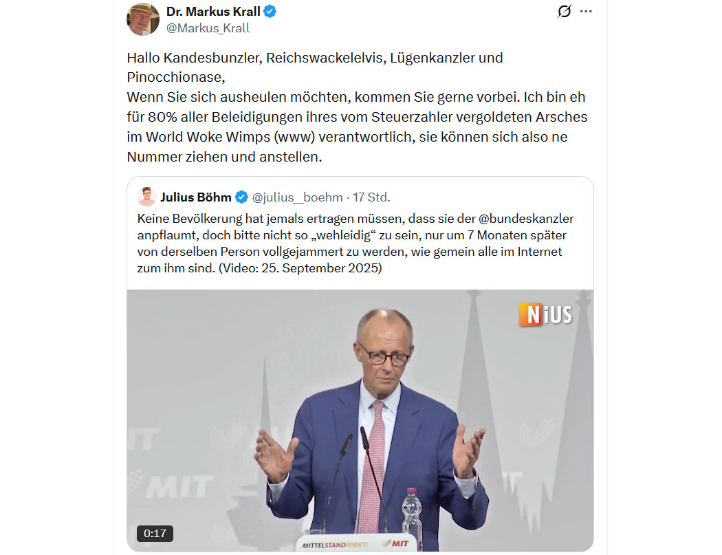 Er kann halt nix, braucht als Narzisst aber ständig Aufmerksamkeit und Bestätigung, da bietet sich ein bestens bezahltes Mandat in der Politik nicht nur an, es drängt sich förmlich auf. Und das verblödete Jungvolk findet das infantile Gequassel offensichtlich krass gut.