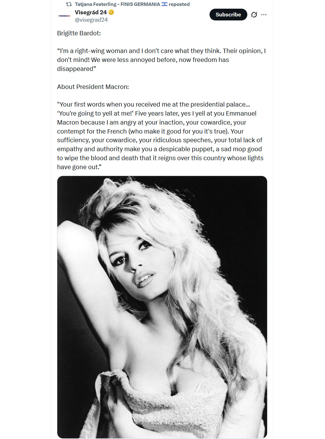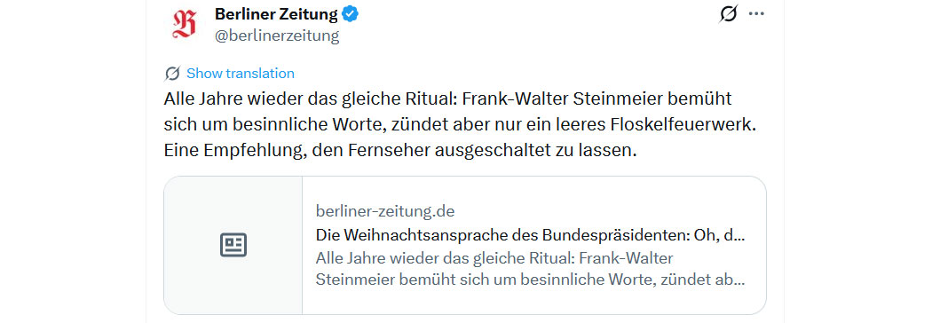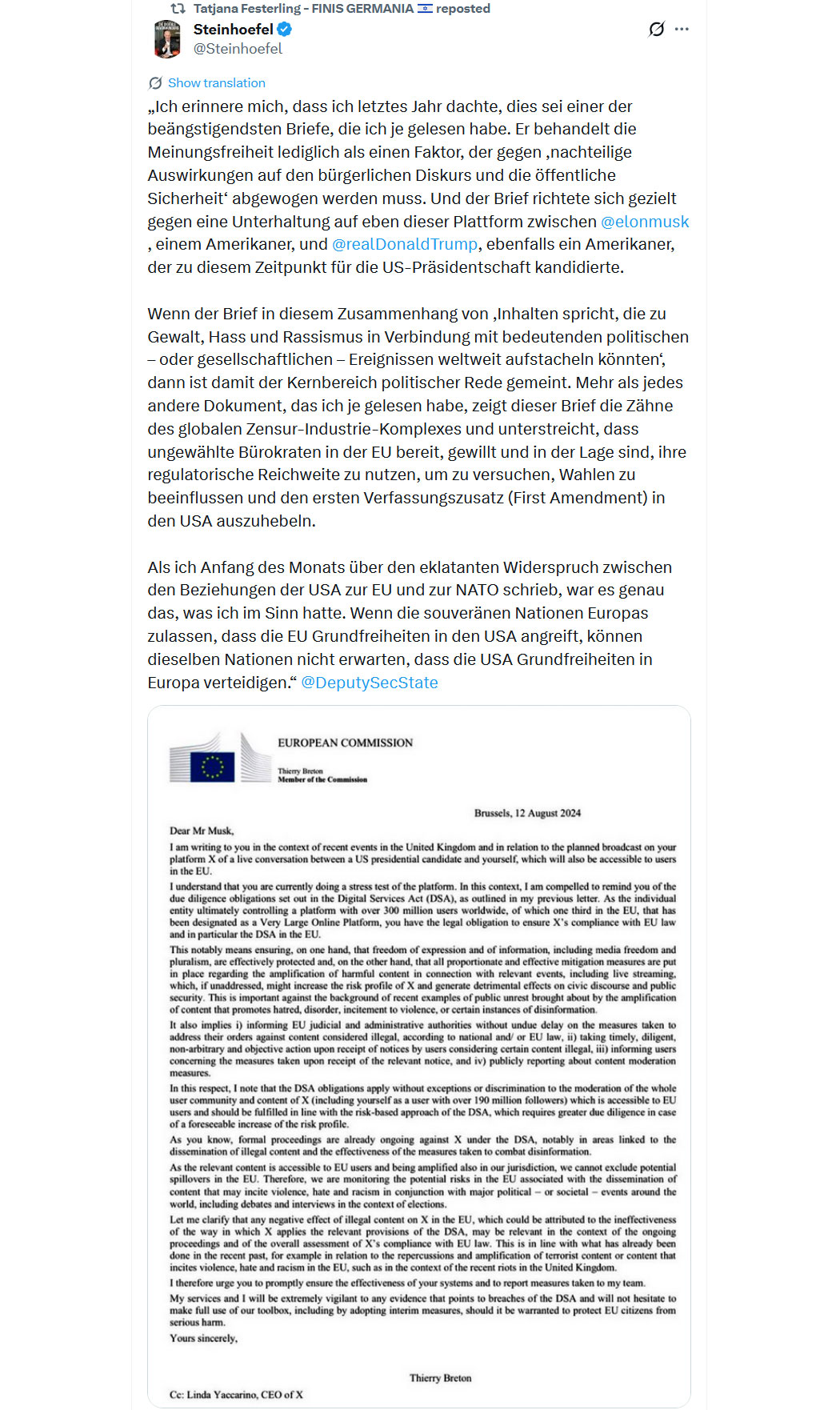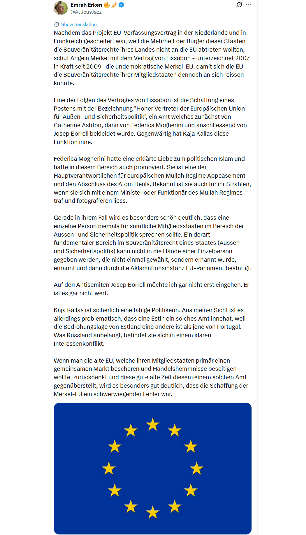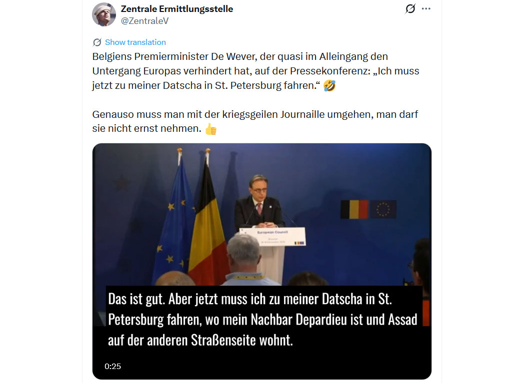 "Die Deutschen 🇩🇪 sind nicht verantwortlich für das, was sie während des Zweiten Weltkriegs getan haben, sie sind nicht verantwortlich für das, was sie 2015 getan haben, und sie werden nicht für die nächste Zerstörung Europas verantwortlich sein, die sie begehen werden.