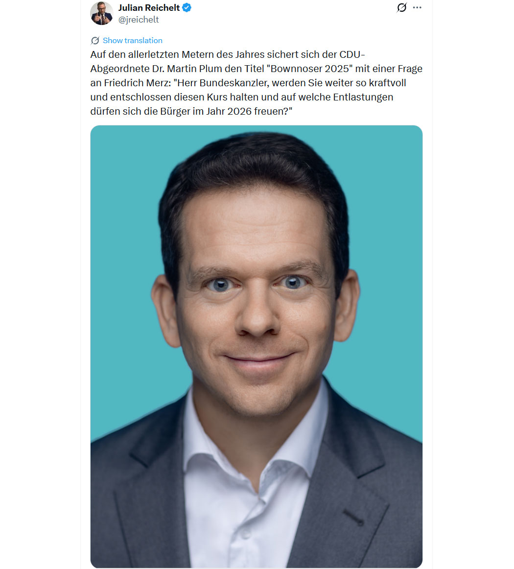 "Stracki" steht wie Steinmeier, Merz, Klingbeil, Bas, Baerbock und Habeck sinnbildlich für die - international interessiert beobachtete - Selbstabwrackung Deutschlands.