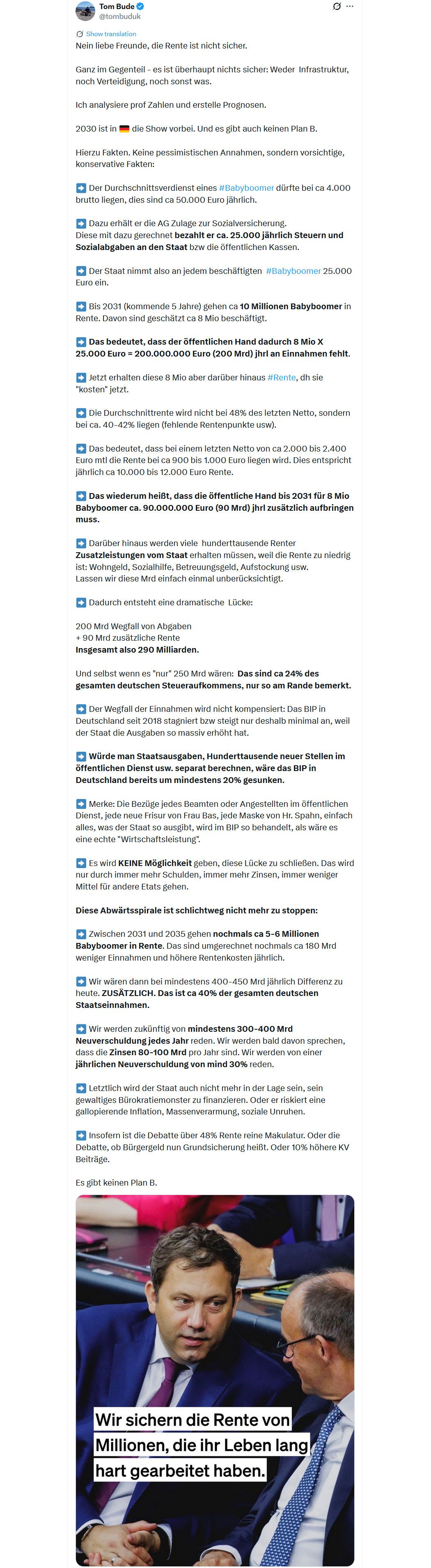 Rund Koopmans hat schon 2015 gewarnt, wie so viele andere echte Experten auch. An vorderster Stelle Prof. Dr. Dr. Gunnar Heinsohn - der daraufhin auf allen Plattformen gecanceld wurde. Nur auf @Achgut_com konnte er seine sachlichen, zahlenbasierten Analysen noch veröffentlichen. Viele, einschließlich wir bei Pegida, haben sich einen Wolf gewarnt - passiert ist genau das Gegenteil von dem, was nötig gewesen wäre. Und auch jetzt wird diese Warnung ins Leere laufen, sie machen so weiter, denn eine Umkehr ihrer Politik wäre a) ein Eingeständnis komplett falsch gelegen zu haben und b) dass die "Rechtsextremisten" Recht hatten. In der AfD ist kein Trump zu erkennen und selbst wenn die AfD mit den von Höcke illusionierten 51% an die Macht käme - der gesamte Unterbau (plus NGOs) ist seit Jahrzehnten von den Höflingen und Profiteuren der Regierungspolitik durchsetzt worden, den kann man nicht so hopplahopp ersetzen. Und die werden alles dafür tun, AfD-Politik zum Scheitern zu bringen. Eine Administration wie in den USA aus kompetenten, furchtlosen Alpha-Tieren kann in Deutschland nicht gebildet werden, Charaktere, die diese undankbaren Posten übernehmen könnten, sind weit und breit nicht zu erkennen.