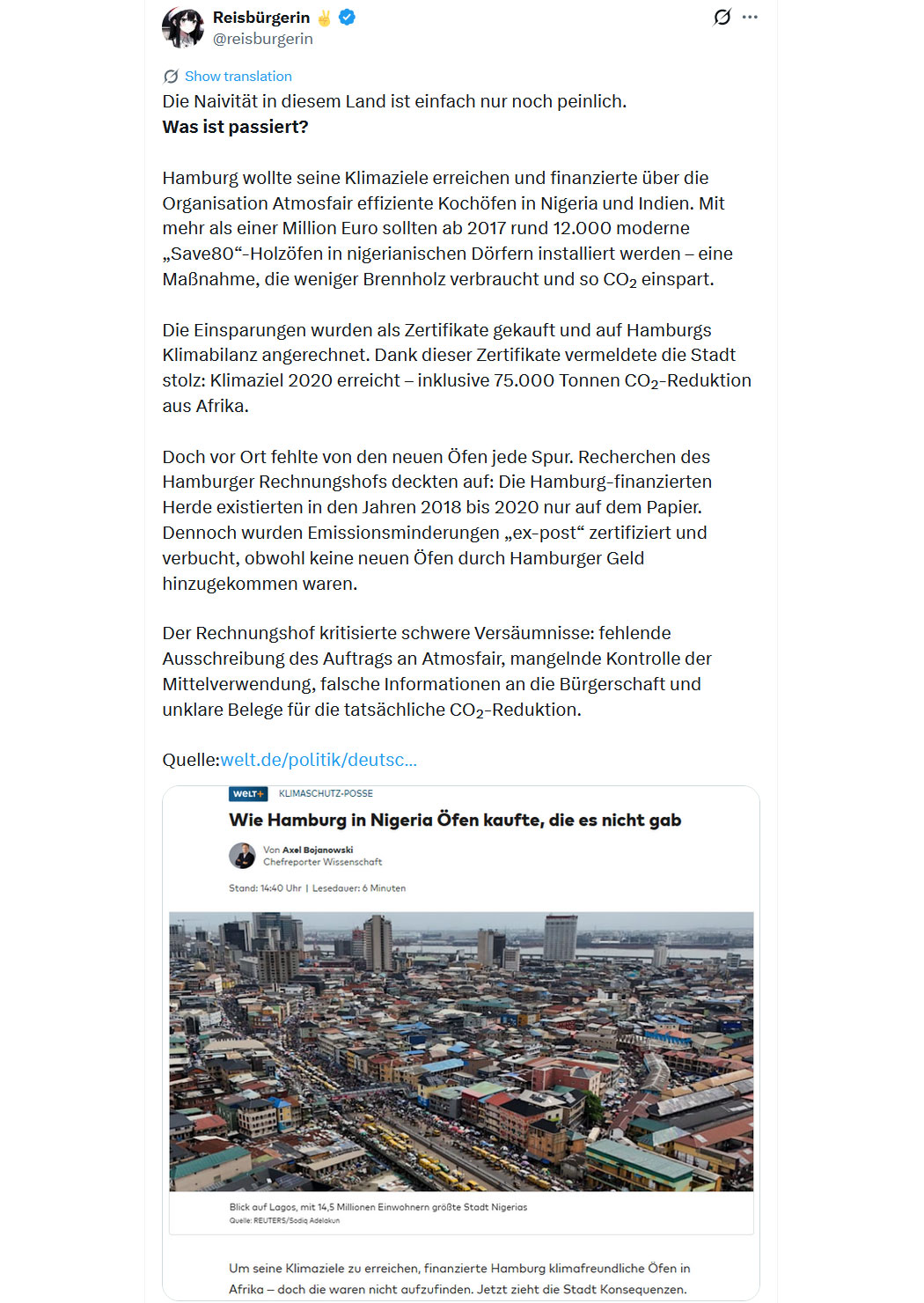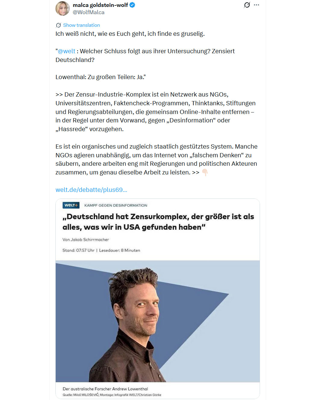 Bildquelle: Screenshot - "WELT - @welt"