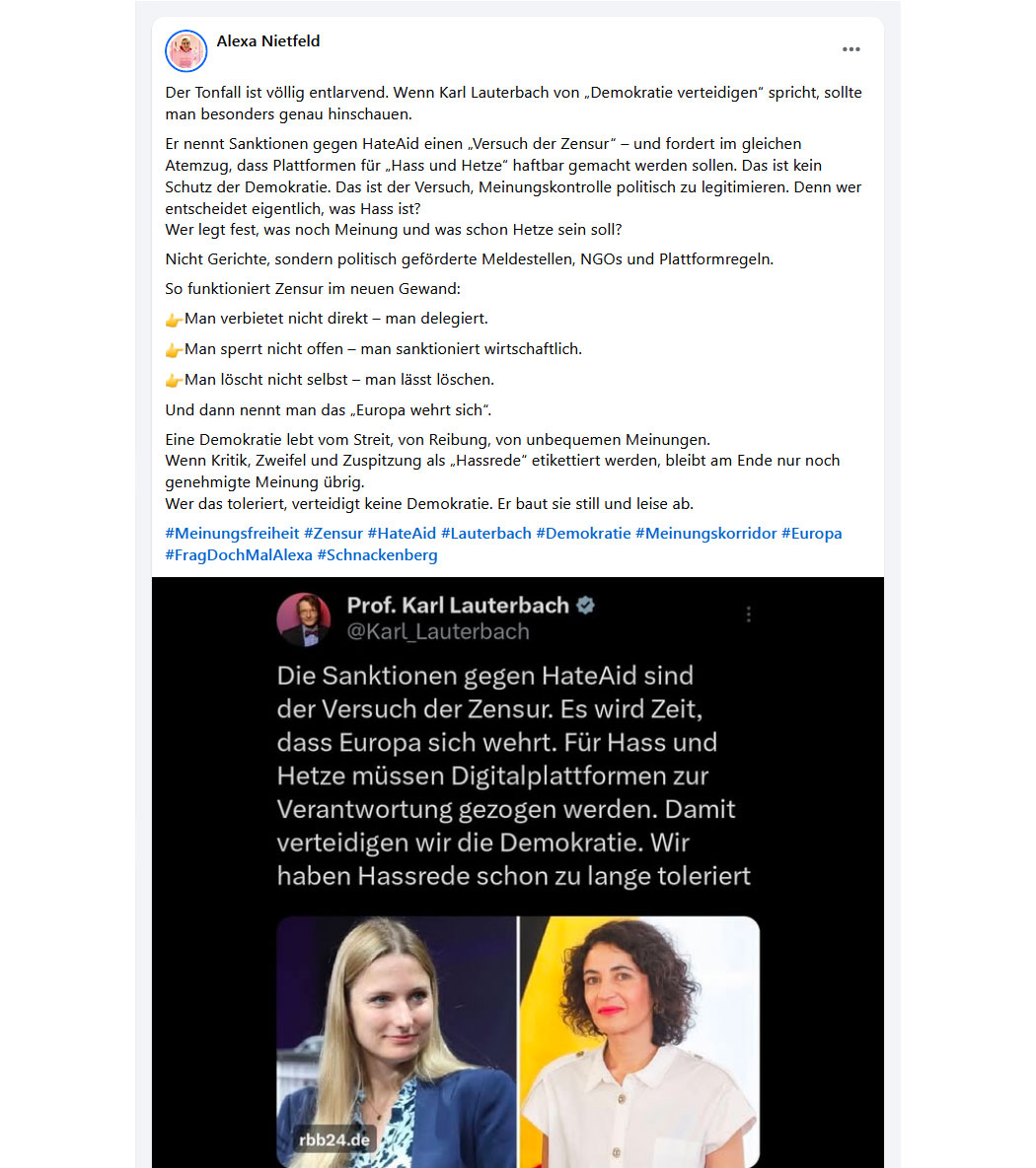 ...mit welchen Gesetzesverschärfungen und außerparlamentarischen Organisationen "Unseredemokratie" meint, Freiheit, "liberale Demokratie" und Meinungsfreiheit sicherstellen zu müssen. Deutschland wurde durch die Nomenklatura in ein totalitäres, islamisiertes Shithole transformiert.