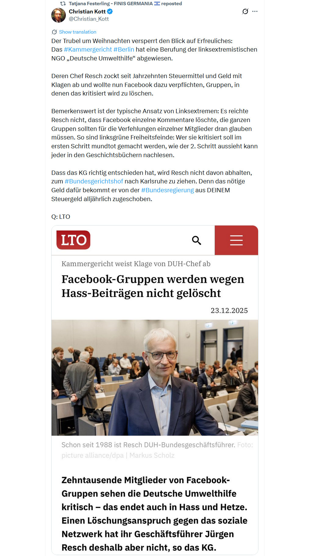 UPDATE - Dienstag, 02.12.2025 - 14:15 Uhr - Tatjana Festerling:
