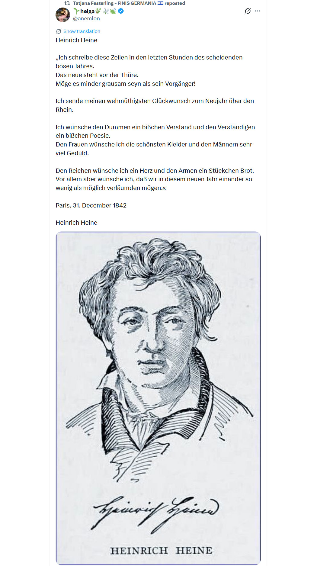 Zum Jahresausklang noch ein paar Gedanken, aufgeschrieben von Heinrich Heine.