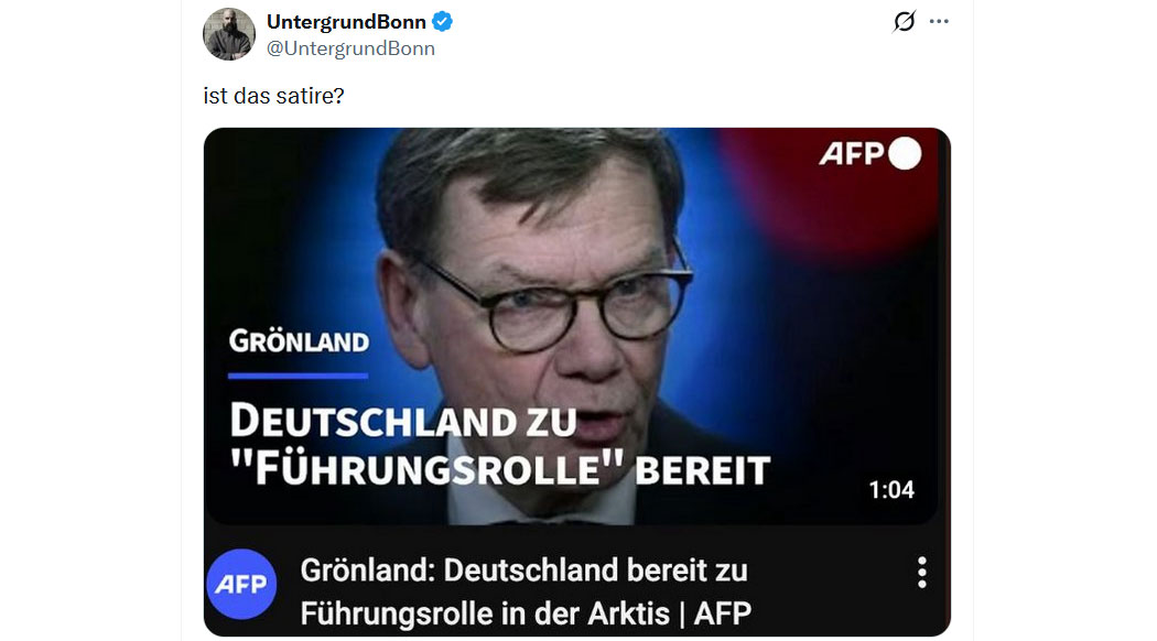 Klingt wie ein Mix aus Immobilien-Deal und Mafia-Angebot - typisch Trump-Style eben. Europa flippt mal wieder aus, es gibt Proteste in Kopenhagen, man schickt lächerlich kleine Truppen-Einheiten nach Grönland - 15 deutsche BW-Männekes.