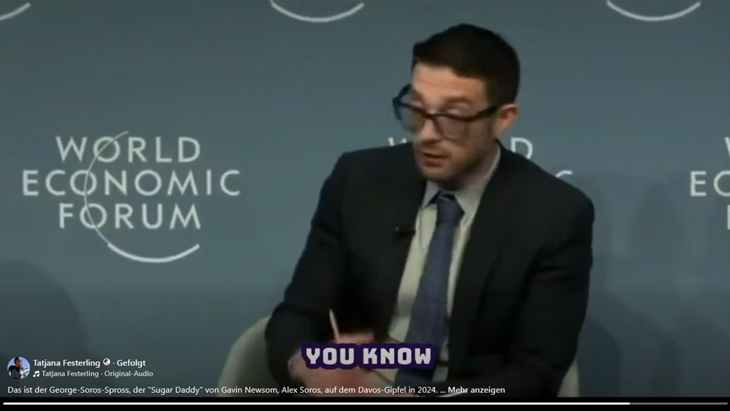 Das ist der George-Soros-Spross, der "Sugar Daddy" von Gavin Newsom, Alex Soros, auf dem Davos-Gipfel in 2024.