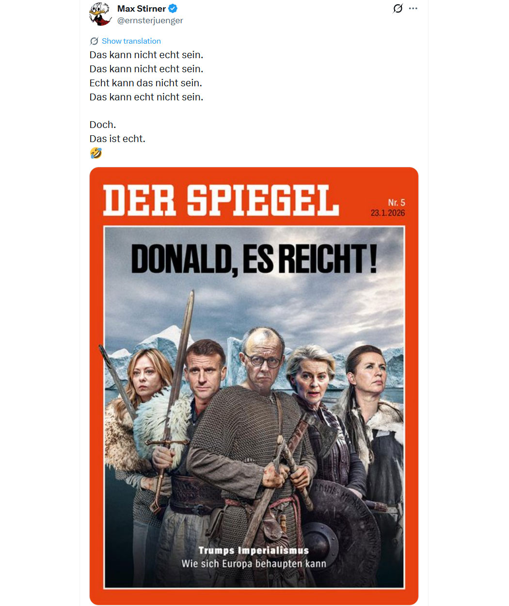Doch, die Clowns vom Spiegel meinen das so wie sie es titeln. 🤣🤡