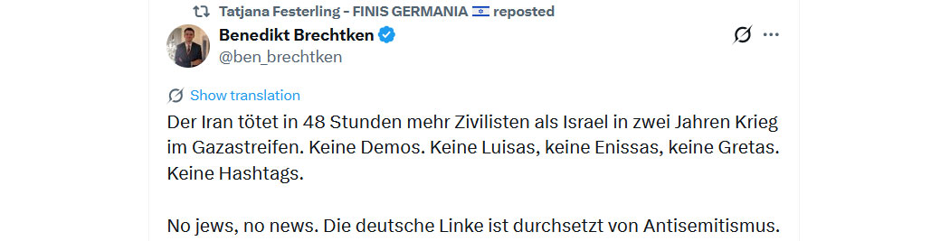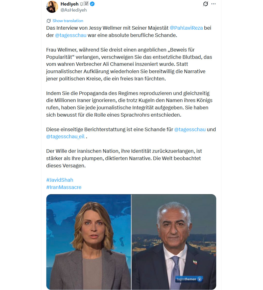 Das Staatsfunk-"Interview" war an Widerwärtigkeit kaum zu überbieten und zeigt das Appeasement des deutschen Staatsapparates vor den Islamisten (egal, ob Sunnis oder Schiiten), die sie, völlig blind vor den Konsequenzen, importiert haben.
