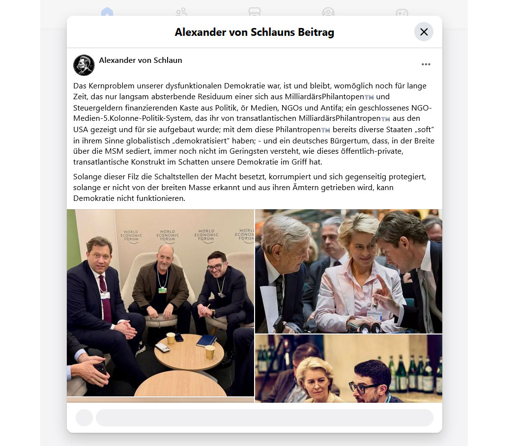 Alex lässt sich, immer breit grinsend, mit allen Figuren des deutschen Parteienregimes ablichten, finanziert links-woke NGOs und anderes Böse in der Welt.