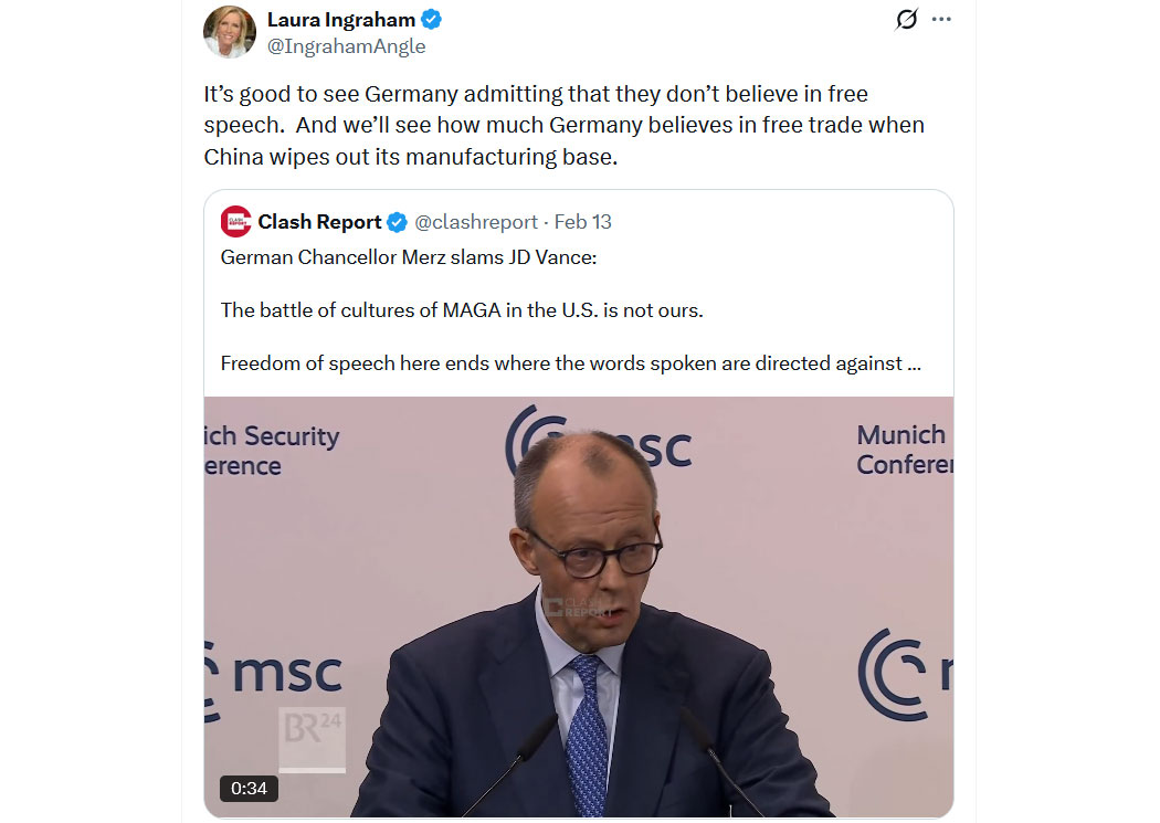 Und jetzt das Wunder: Laura Ingraham - @IngrahamAngle - mit über 5 Mio Followern macht den deutschen under-performenden Narren tatsächlich berühmt, in dem sie seinen Quatsch teilt. 😂🤡