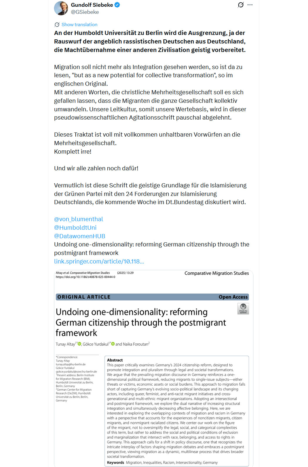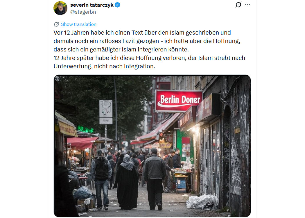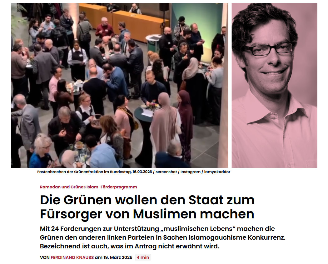 Welch ein Wunder, nach so vielen Jahren der Islamischen Infiltration und Unterwanderung der staatlichen Strukturen in Deutschland (und ganz West-Europa), vor allem durch die Muslimbruderschaft, werden die Grünen als Wegbereiter des Kalifats Eurabia benannt. Schade, diese Klarheit hätten wir uns 2015 bei Pegida gewünscht, als wir genau vor dieser Entwicklung gewarnt haben und man die Islamisierung noch hätte stoppen können. Damals, vor 10 Jahren, gab es das Ausmaß der Unterwerfung vor der Pro-Islam-Lobby in der indoktrinierten Bevölkerung zumindest noch nicht.