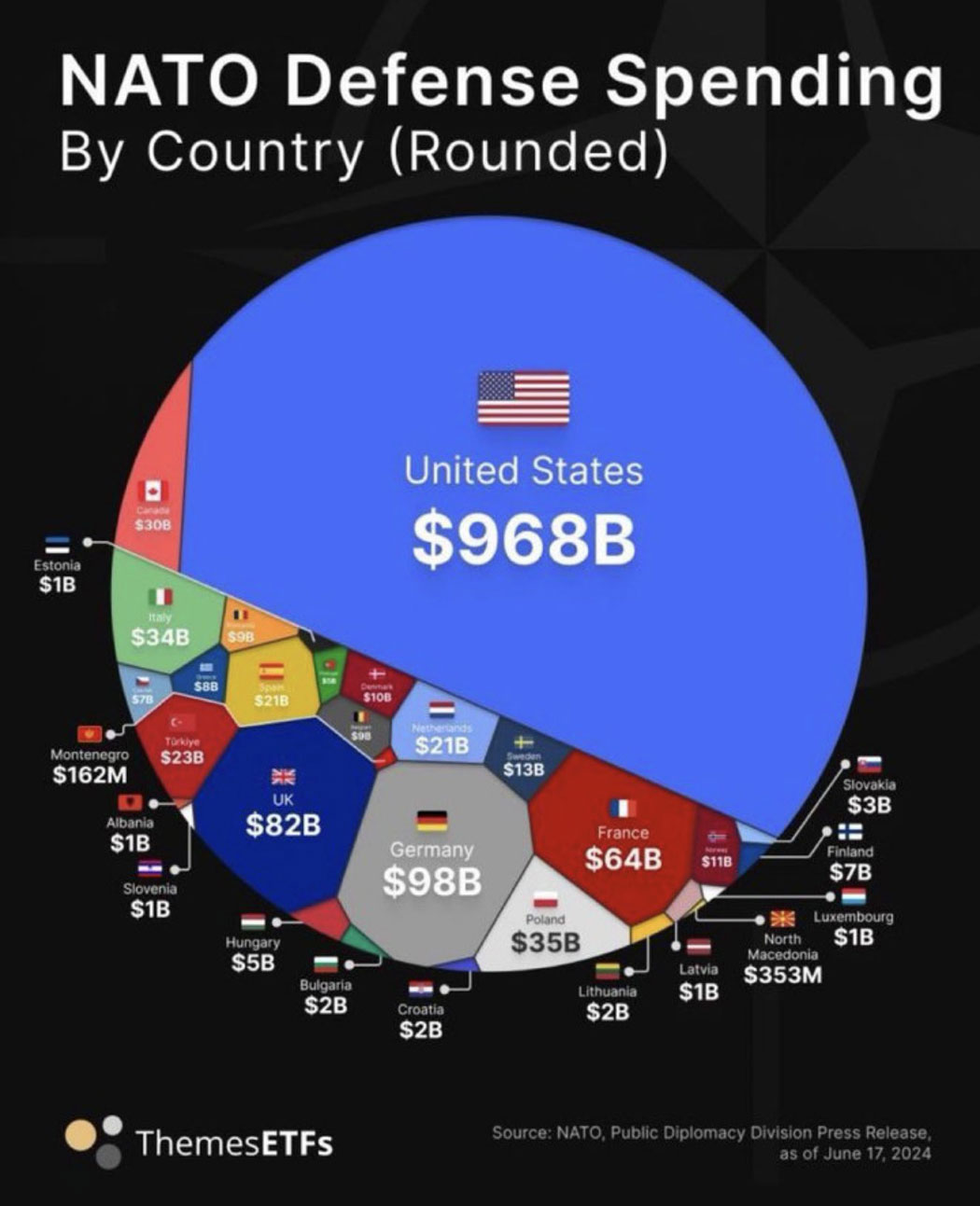 Und unsere "Verbündeten" sparen ein Vermögen bei der Verteidigung.