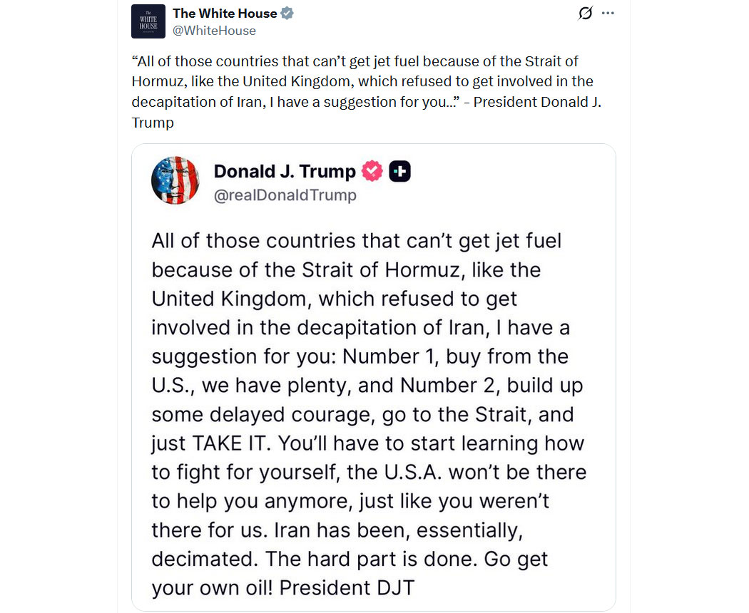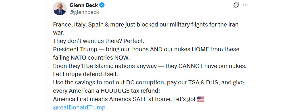"Frankreich, Italien, Spanien und mehr haben unsere Militärflüge für den Iran-Krieg blockiert.