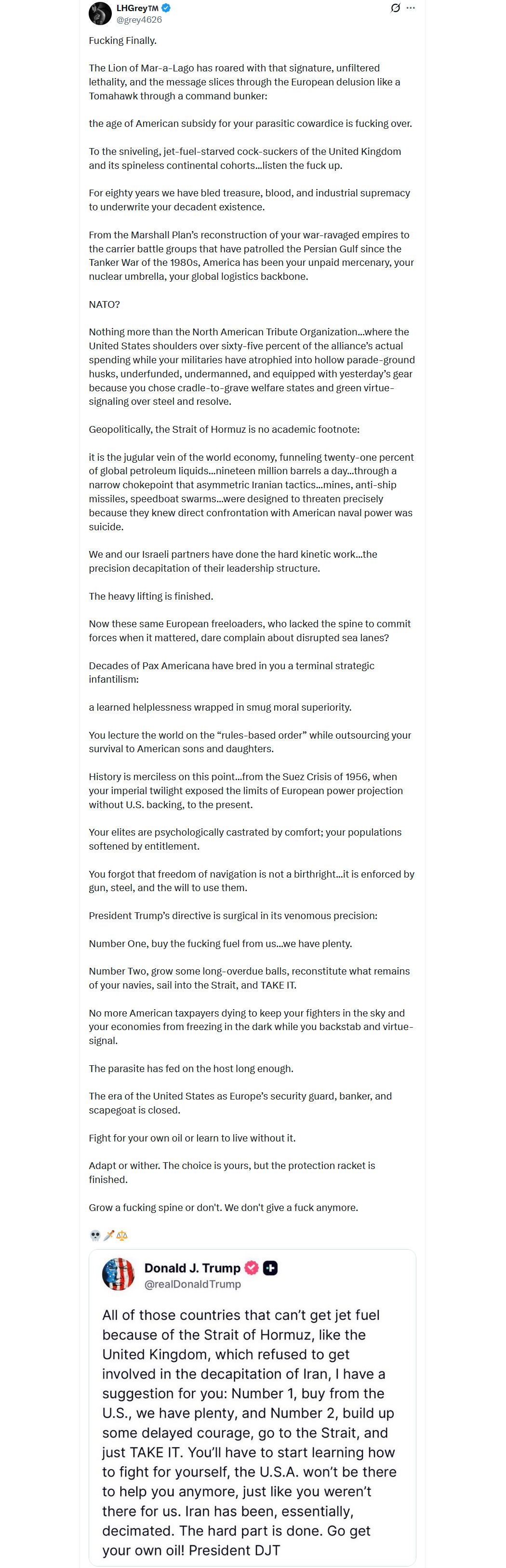 Wow, @grey4626 is a damn fantastic beast! This is the tweet of the day – right in the face of these European “leaders” infected with hubris, arrogance and narcissism.
