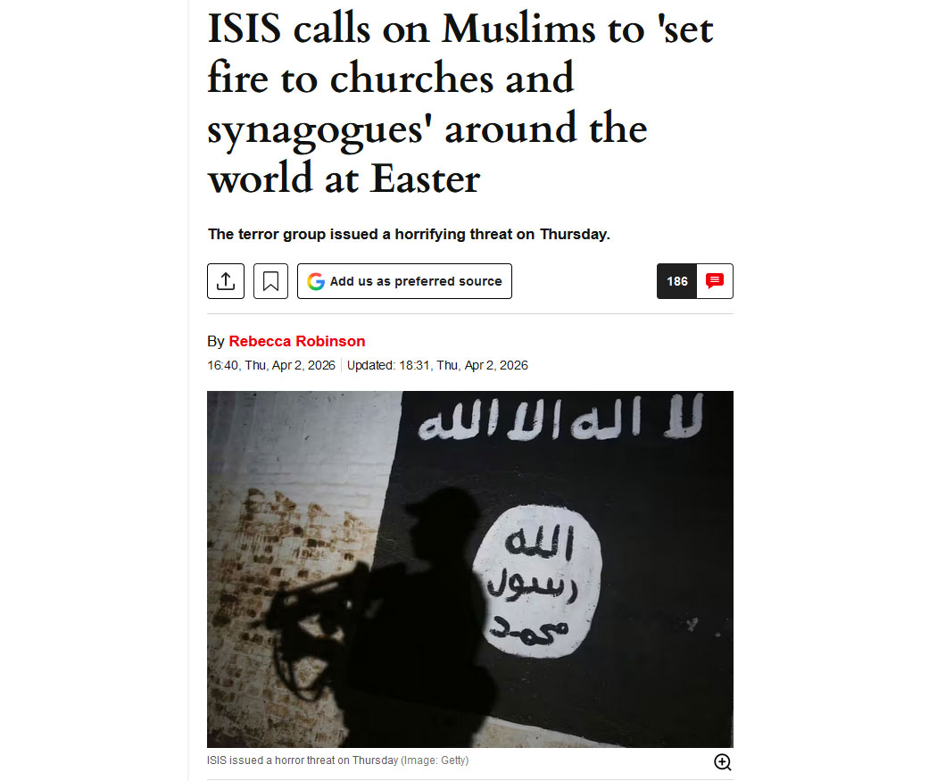 Bildquelle: Screenshot - "ISIS calls on Muslims to 'set fire to churches and synagogues' around the world at Easter"