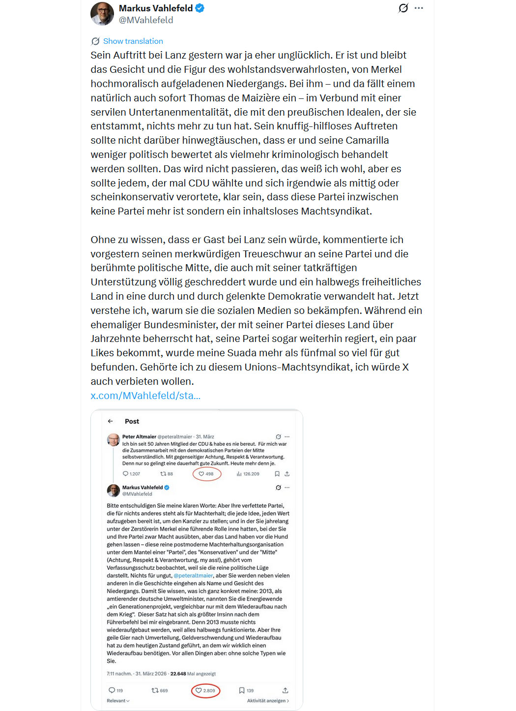 Bildquelle: Screenshot - "Markus Vahlefeld - @MVahlefeld"