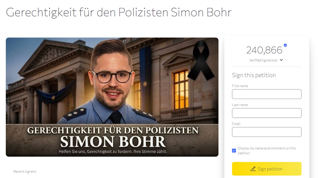 Bildquelle: Screenshot - "Gerechtigkeit für den Polizisten Simon Bohr" via @Change