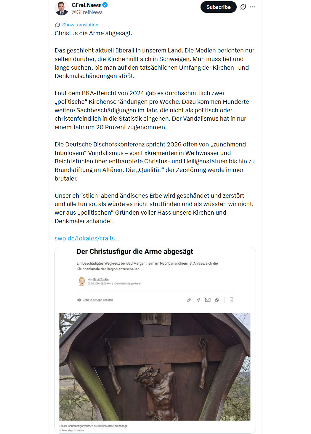 Bildquelle: Screenshot - "GFrei.News - @GFreiNews"