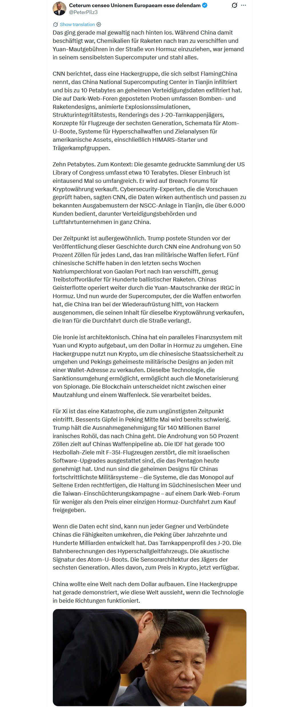 Bildquelle: Screenshot - "Ceterum censeo Unionem Europaeam esse delendam - @PeterPilz3"