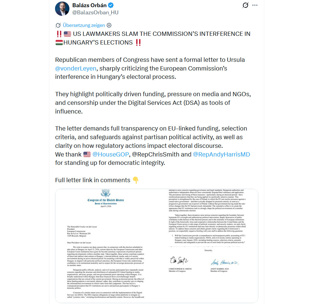 "‼️🇺🇲 US-ABGEORDNETE VERURTEILEN DIE EINMISCHUNG DER KOMMISSION IN DIE WAHLEN IN 🇭🇺UNGARN ‼️