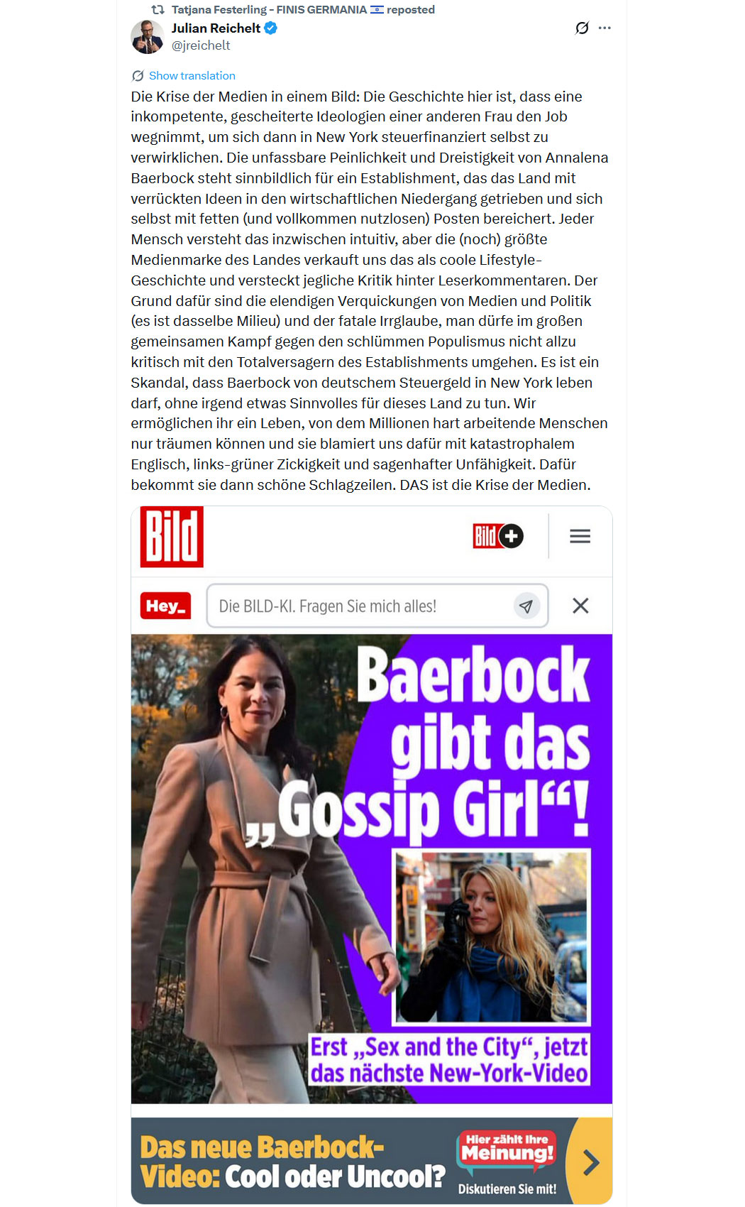 Bildquelle: Screenshot - "Julian Reichelt - @jreichelt"