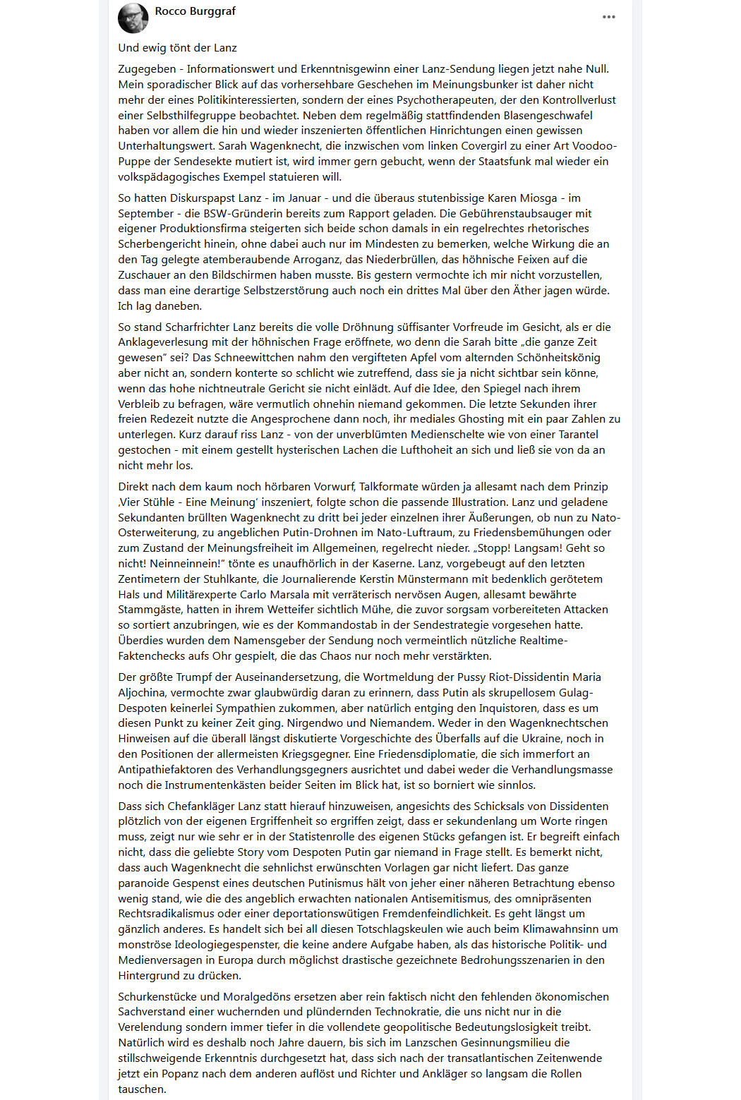 "Das Wort zum Sonntag" wie immer brilliant formuliert von Rocco Burggraf: