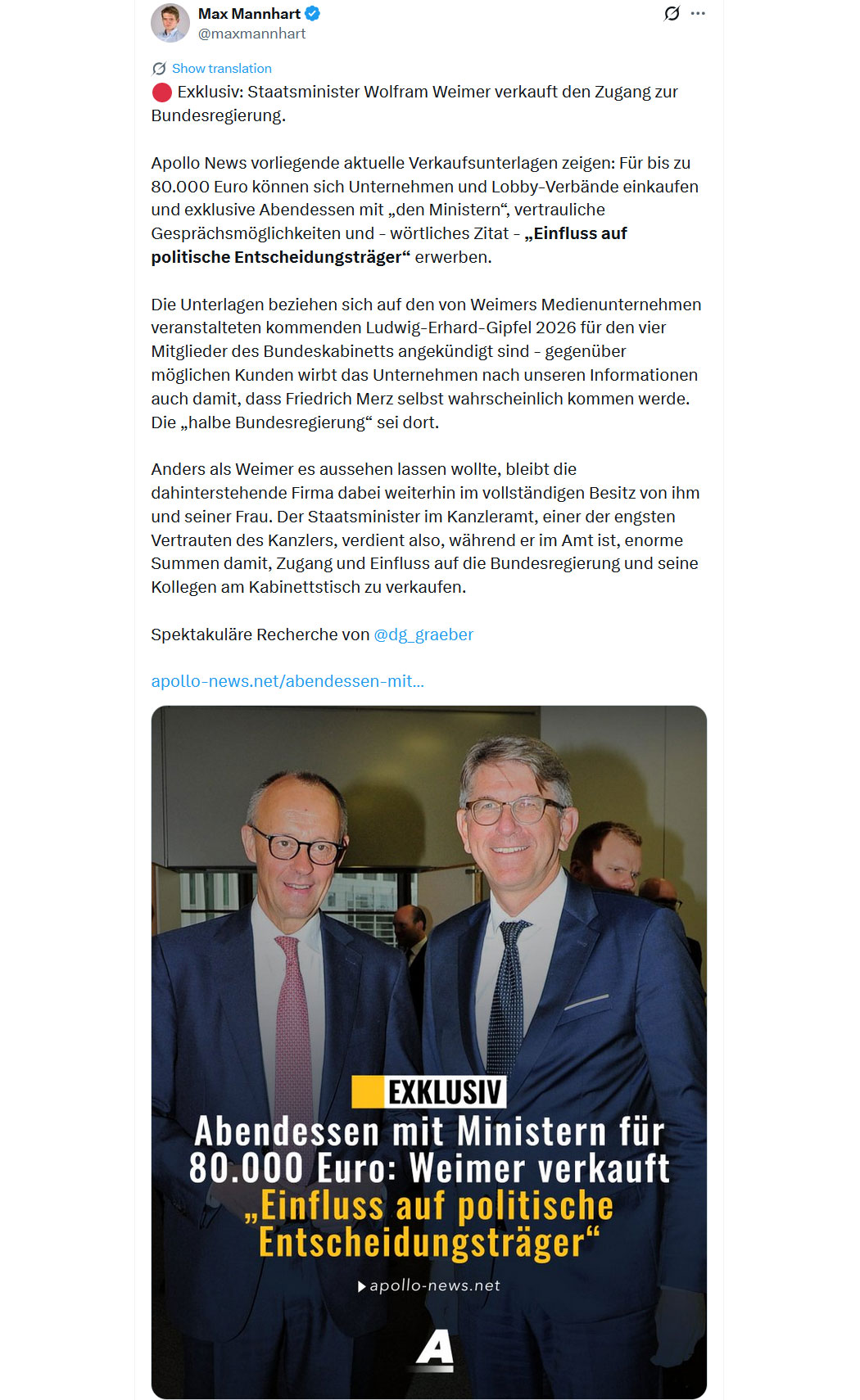 Bildquelle: Screenshot - "Apollo News - @apollo_news_de"
