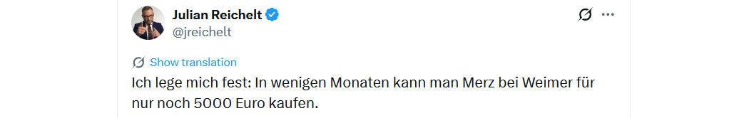 Zum Ramschpreis! Der Kanzler zum Sonderpreis! Greift zu! Nur noch für kurze Zeit! 😂
